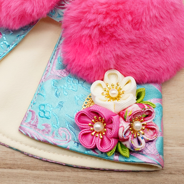 Spring Imperial Pink Blue Phoenix CNY Cape with Fuschia Pink Faux Fur Collar