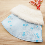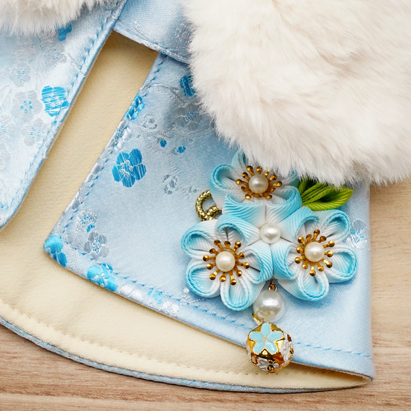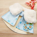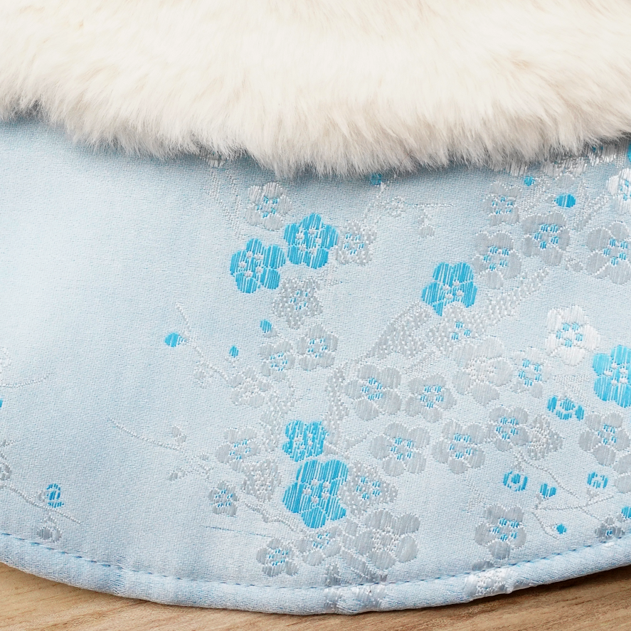 Spring Imperial Baby Blue Blossom CNY Cape with White Faux Fur Collar