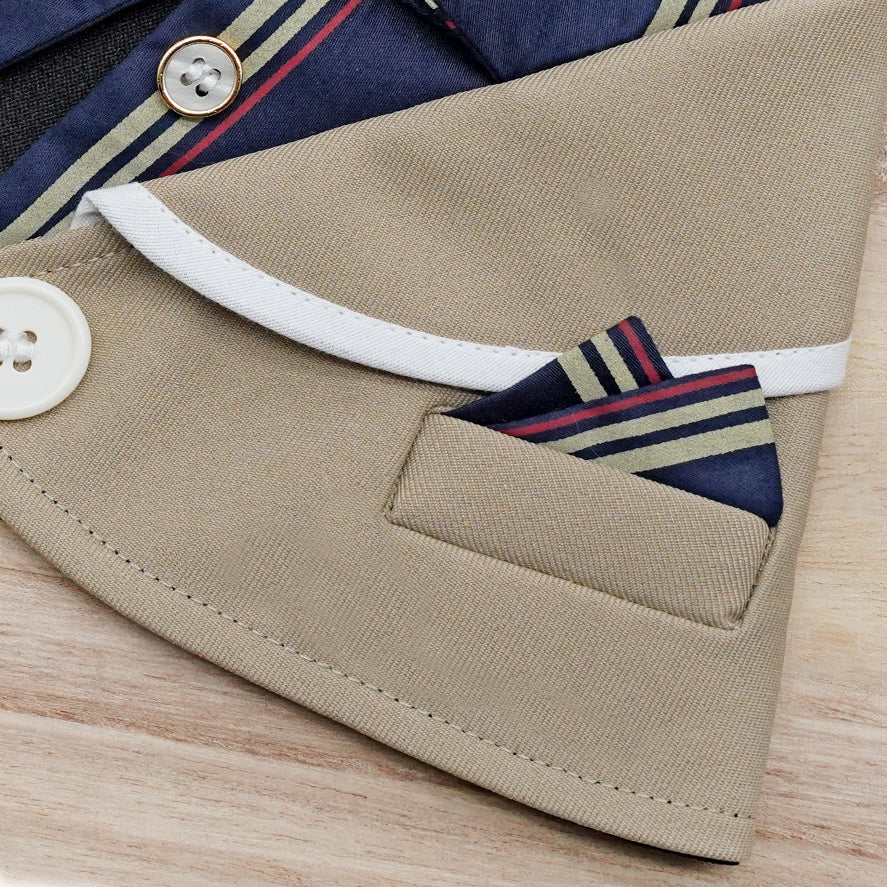 Introducing our sophisticated Suit Capes for male pets! Crafted from high-quality suit fabric with meticulous workmanship, these capes add a touch of semi-formal elegance to your pet's ensemble. Perfect for special occasions or cafe outings, your furry friend will strut with style and charm in these tailored capes. Make a fashion statement for your pet with our Gentlemen Tailored Suit Capes today!