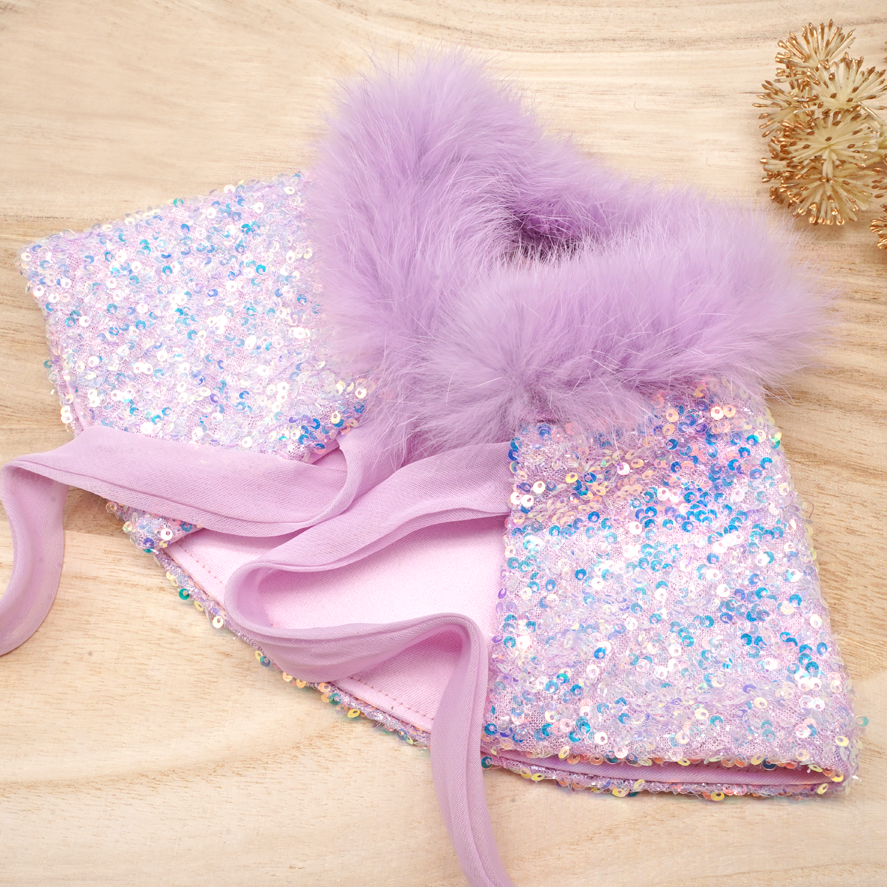 This beautifully sequin-embellished glitter cape is accented with faux fur panels and co-ordinating sequin details. Design and handmade by our dedicated TPC production team of artisans, only quality imported fabrics is screened and selected with our highest standard of workmanship just for you. Style and comfort made in mind for your pet. Perfect for a fashionable night out on the town or it can be worn just about anywhere!