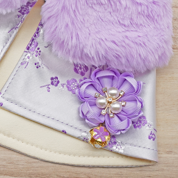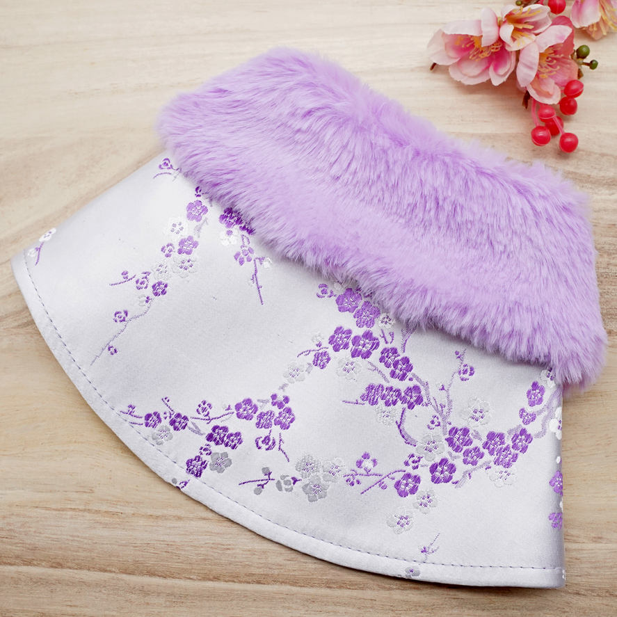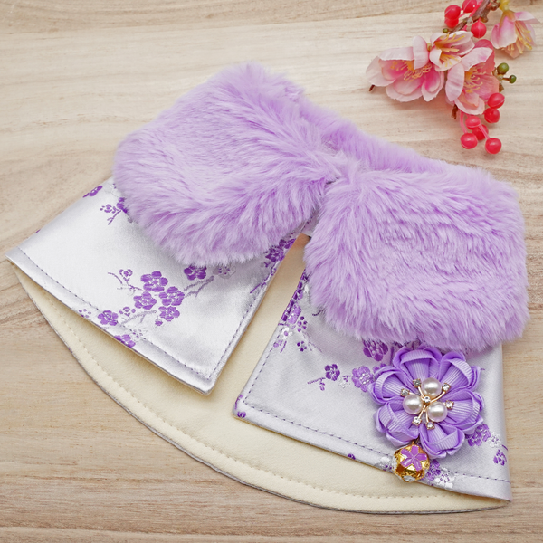 Spring Imperial Lavender Blossom CNY Cape with Violet Faux Fur Collar