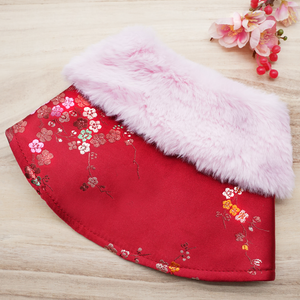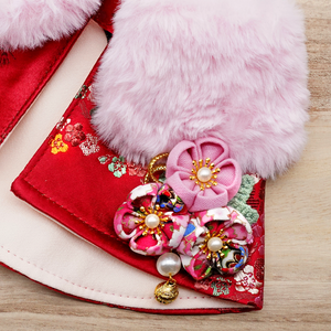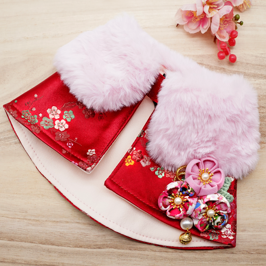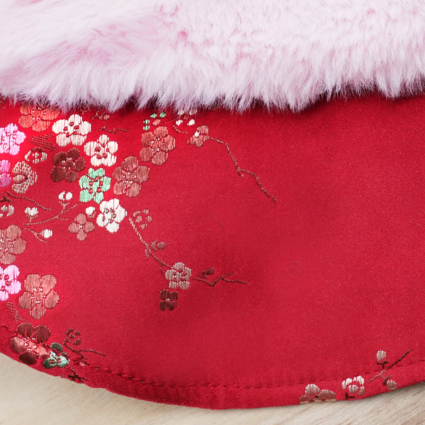 Spring Imperial Scarlet Blossoms CNY Cape with Baby Pink Faux Fur Collar