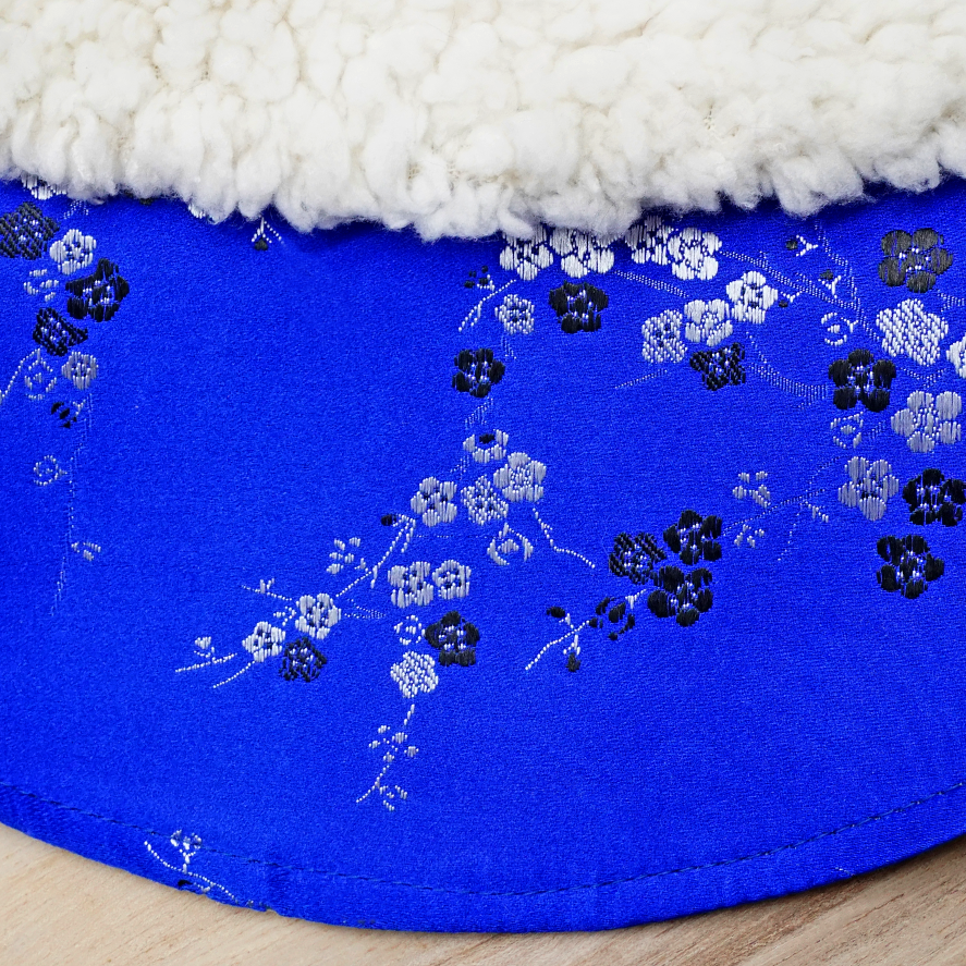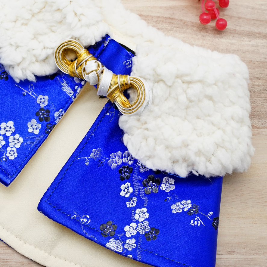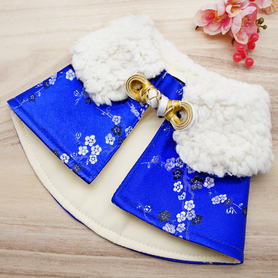 Spring Of Energy in Electric Blue Blossoms CNY Cape with Faux Fur Collar