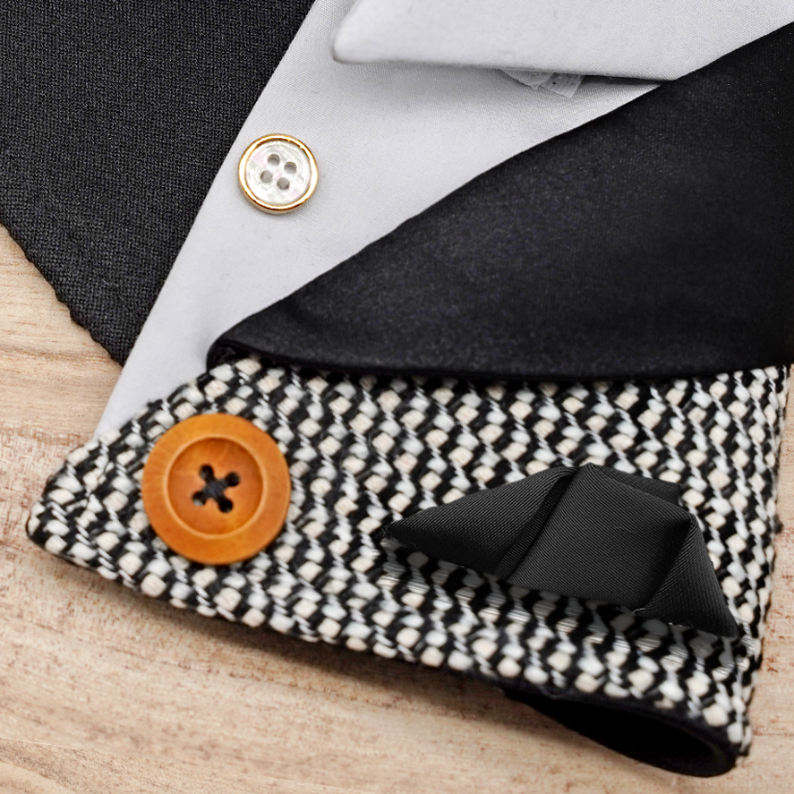 Classic Black Satin Lapel Tweed Suit Cape