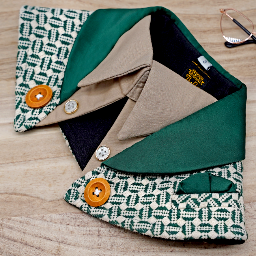 Introducing our sophisticated Tweed Suit Capes with lush satin collar for male pets! Crafted from high-quality human grade suit fabric with meticulous workmanship, these capes add a touch of semi-formal elegance to your pet's ensemble. Perfect for special occasions or cafe outings, your furry friend will strut with style and charm in these tailored capes. Make a fashion statement for your pet with our Gentlemen Tweed Suit Capes today!