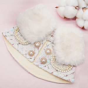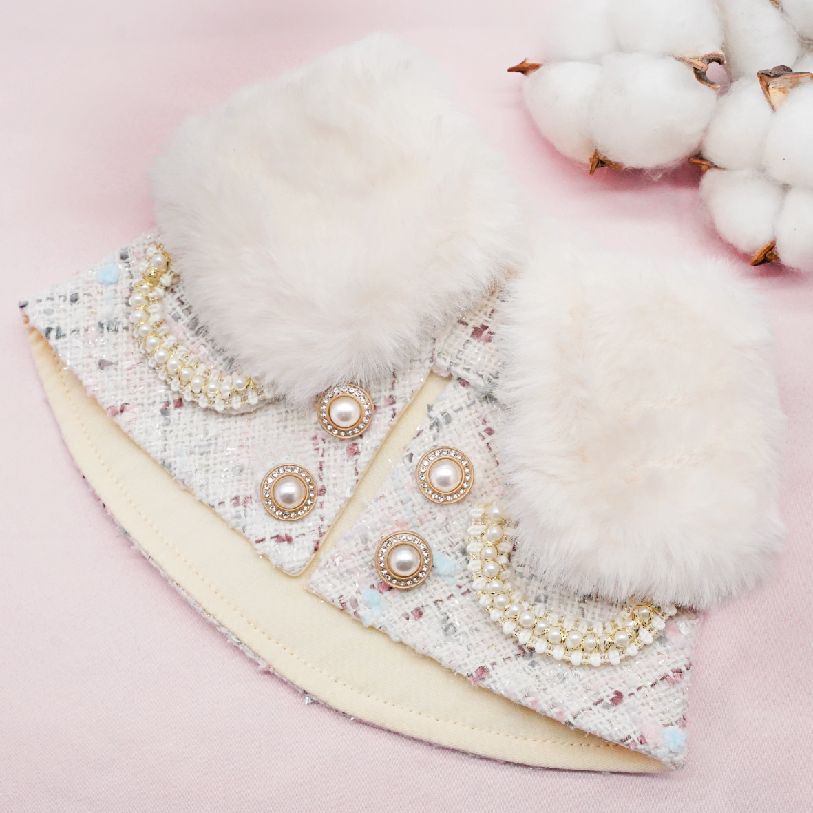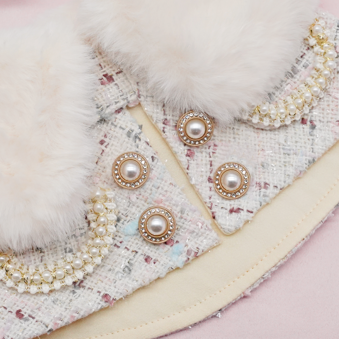 You can always rely on The Pets Couture to create retro-inspired pieces that are so pretty and glamorous. This jacket is expertly tailored from wool-blend bouclé-tweed in a statement of pastel hues embellished with pearls and gold shank buttons. I