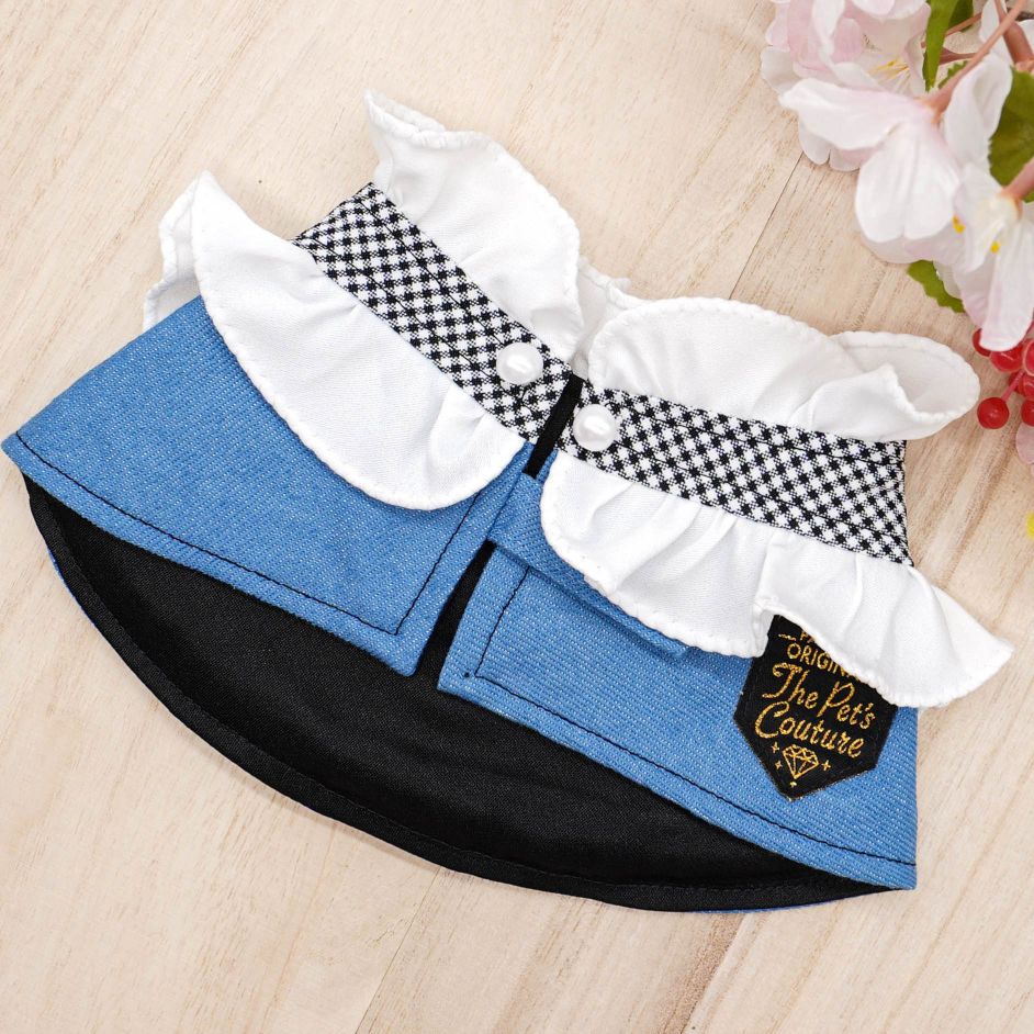 女式牛仔褶边斗篷 - 格纹少女褶边
