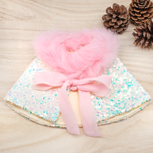 This beautifully sequin-embellished glitter cape is accented with faux fur panels and co-ordinating sequin details. Design and handmade by our dedicated TPC production team of artisans, only quality imported fabrics is screened and selected with our highest standard of workmanship just for you. Style and comfort made in mind for your pet. Perfect for a fashionable night out on the town or it can be worn just about anywhere!