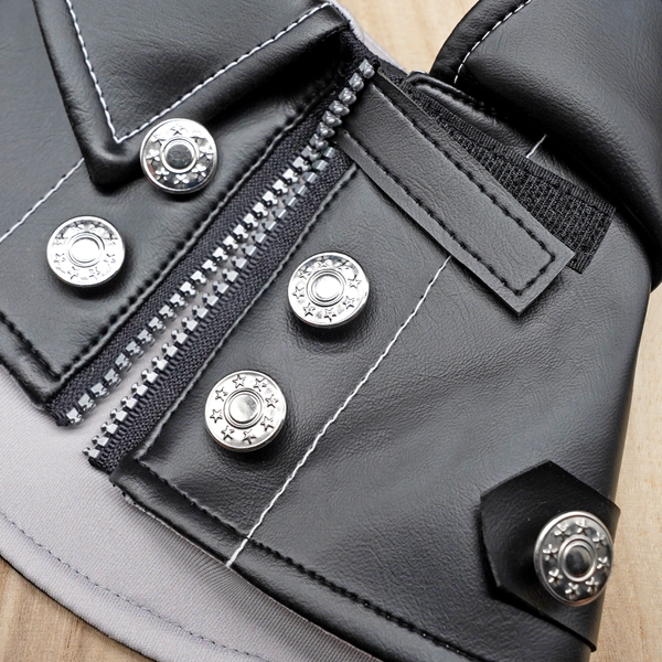 Polished steel buttons and zippered detailing for that authentic rocker finish