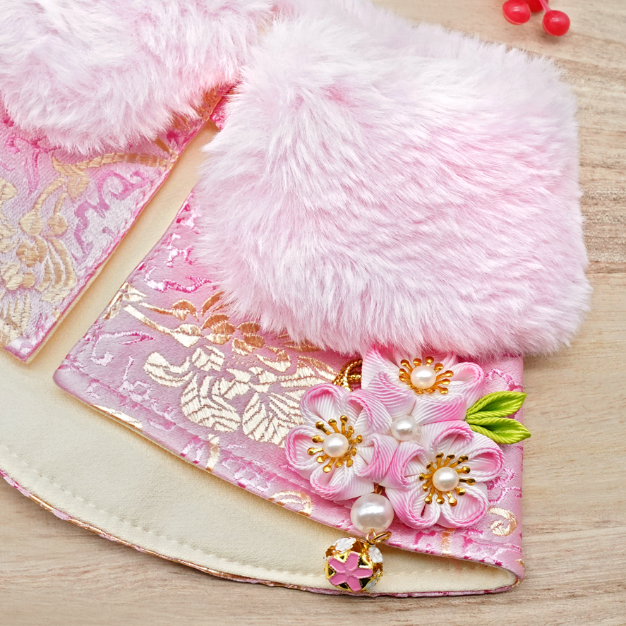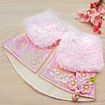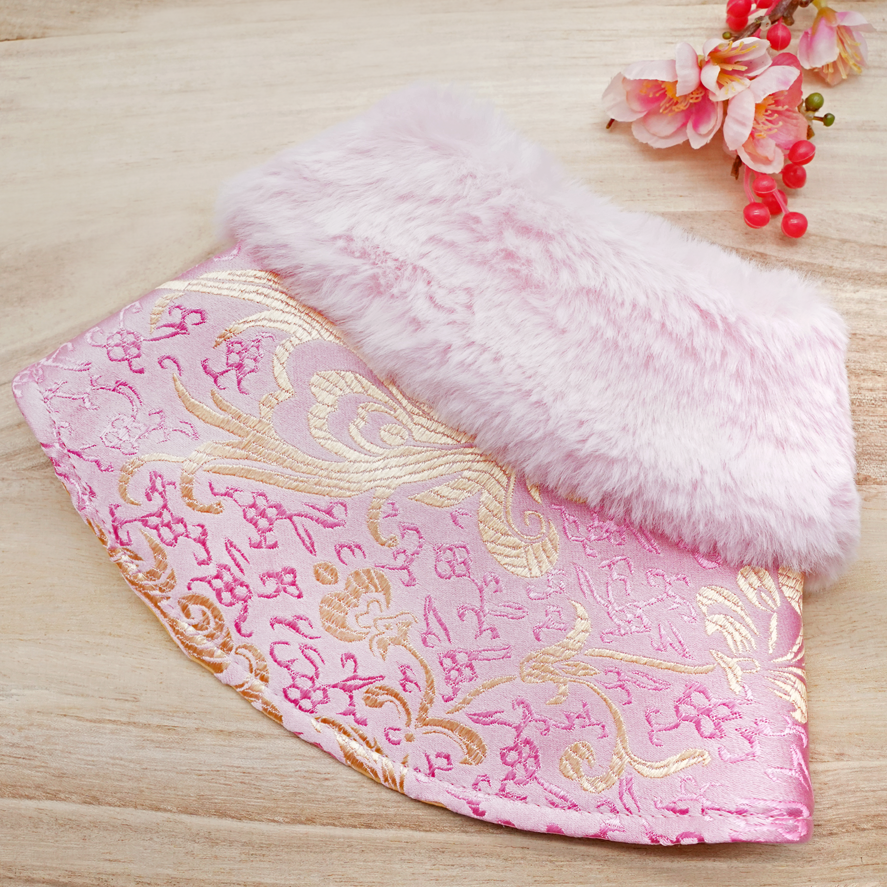 Spring Imperial Baby Pink Gold Phoenix CNY Cape with Baby Pink Faux Fur Collar