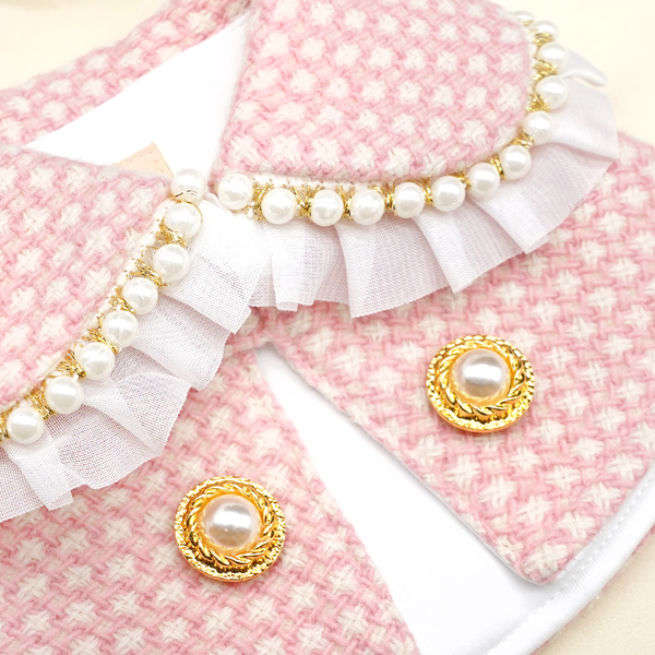 您始终可以依靠 The Pets Couture 打造出如此漂亮迷人的复古风格单品。这款夹克采用羊毛混纺圈圈花呢精心剪裁而成,呈抢眼的淡粉色,内衬哑光金色珍珠纽扣。这一切都是通过高级定制镜片实现的日常穿着性。