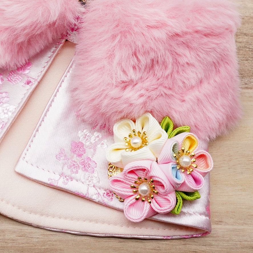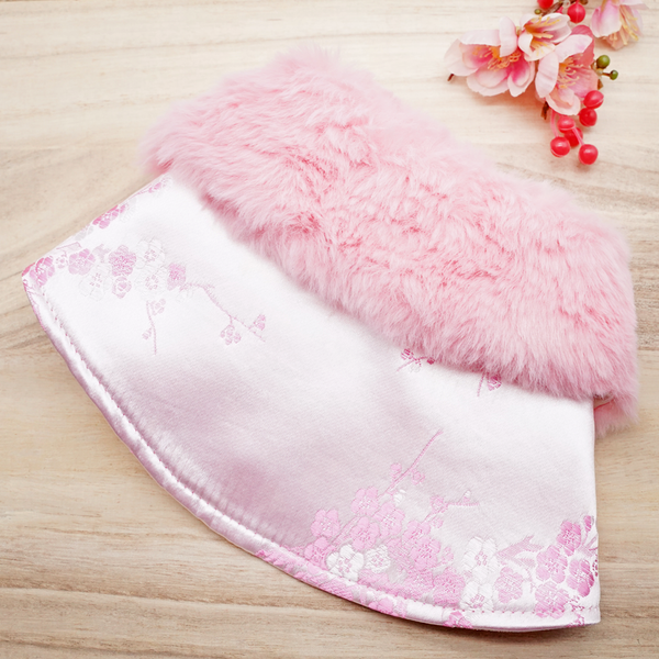 Spring Imperial Baby Pink Blossoms CNY Cape with Rose Pink Faux Fur Collar
