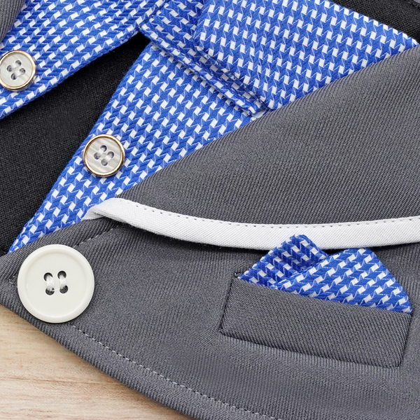 Introducing our sophisticated Suit Capes for male pets! Crafted from high-quality suit fabric with meticulous workmanship, these capes add a touch of semi-formal elegance to your pet's ensemble. Perfect for special occasions or cafe outings, your furry friend will strut with style and charm in these tailored capes. Make a fashion statement for your pet with our Gentlemen Tailored Suit Capes today!